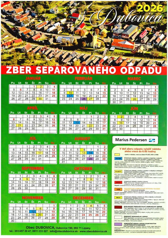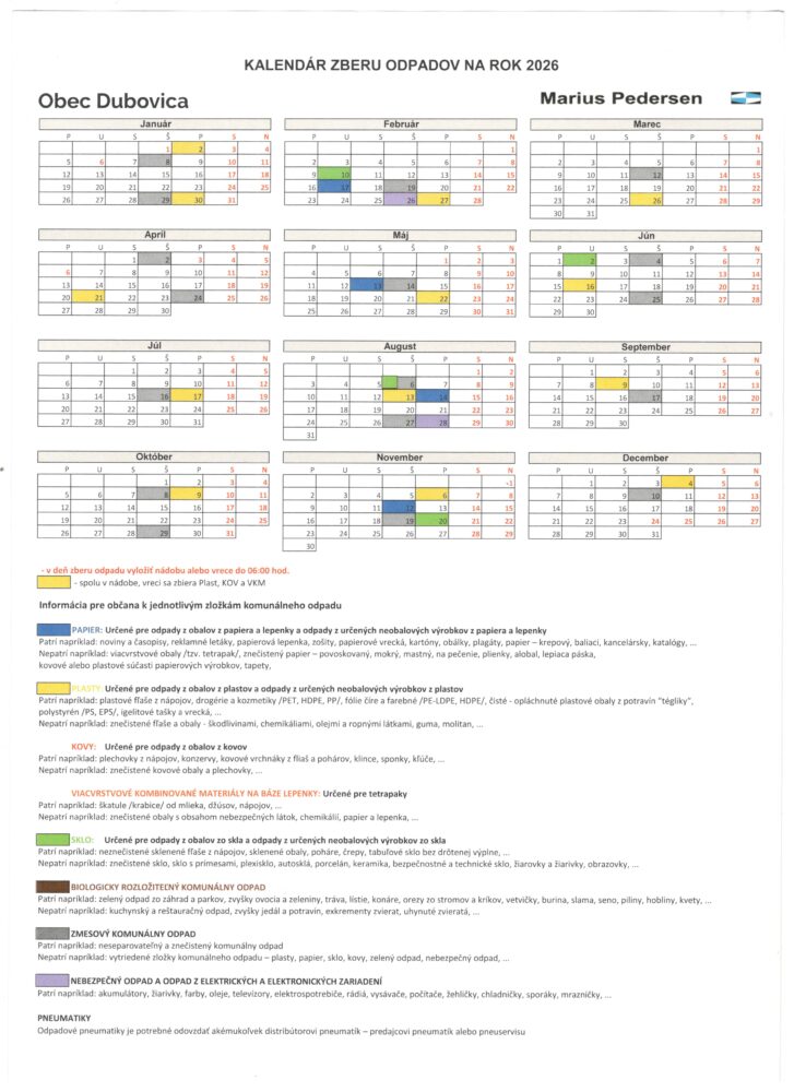 Kalendár zberu odpadu na rok 2026